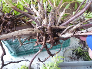見た目で被害を見つけにくいのがセダム種、キリンソウ種などのサボテンなどの耐候性を備えている植物です。根を食害されても地上部は正常な状態に見えます。発見できるのは晩秋~冬季に落葉枝処理や強風で枝が動いた時に、株全体が地際から外れて発見する事が多く、手遅れが多く発生しています。