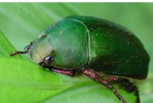 コガネムシの中でも被害が多いアオドウガネは成虫の体長は約20mm、光沢のある緑色が特徴の多く被害を出し、他のコガネムシ類も食害を発生します。
