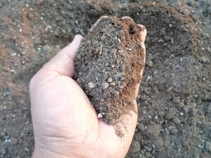 培土の組成は秘密で判らなったが、赤土、バーク堆肥、軽石もしくは団粒土で構成されているようだ