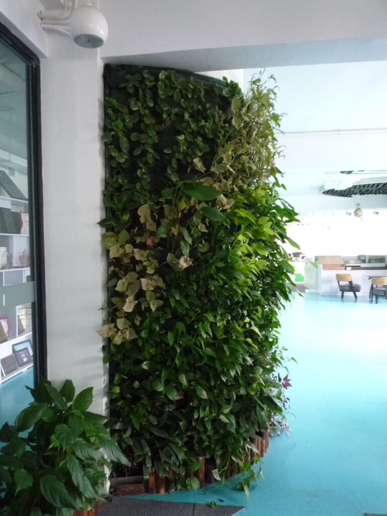中国の壁面緑化は日本と大きく異なるのは、室内での壁面緑化が多いと言える。