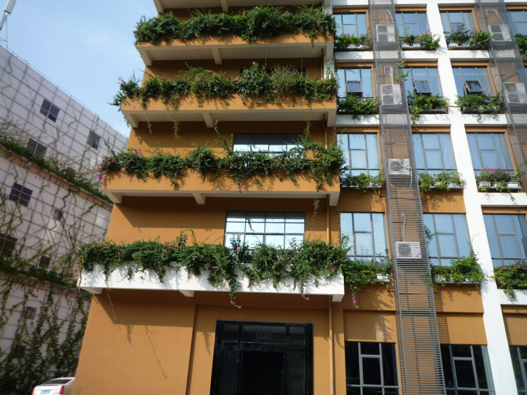 中国を始め東南アジア諸国で見うけられる完成度の高い壁面緑化は、設置場所により独立型緑化システムが多い傾向にある。