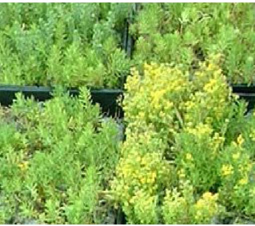 右側:試験区 茎太になり草丈が低く 密集した花序は塊状花房に下段より順次開花する