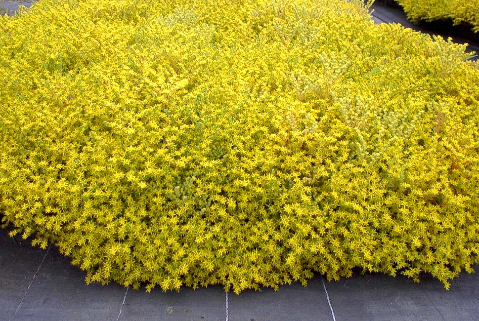 メキシコマンネングサの開花シーンは黄色いジュータンを敷き詰めたきれいな景色になるが、