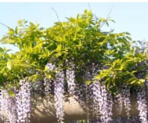 庭園にはふじ棚で鑑賞が多い。白、ピンク、淡紫、紫など花色が豊かで、甘い香り