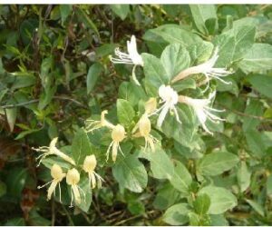 本来は薬用植物。花は香りがよく、白色から黄変するので金銀木と呼ばれる。