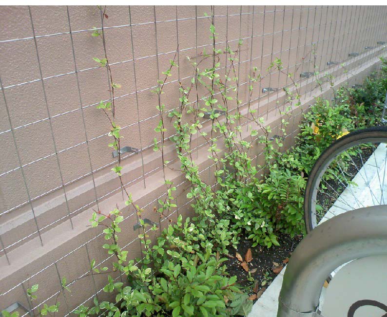 植栽時にツルを金網に誘引出来ない短いツルは、植栽後に分枝し前面に伸長し、地上部に広がります。