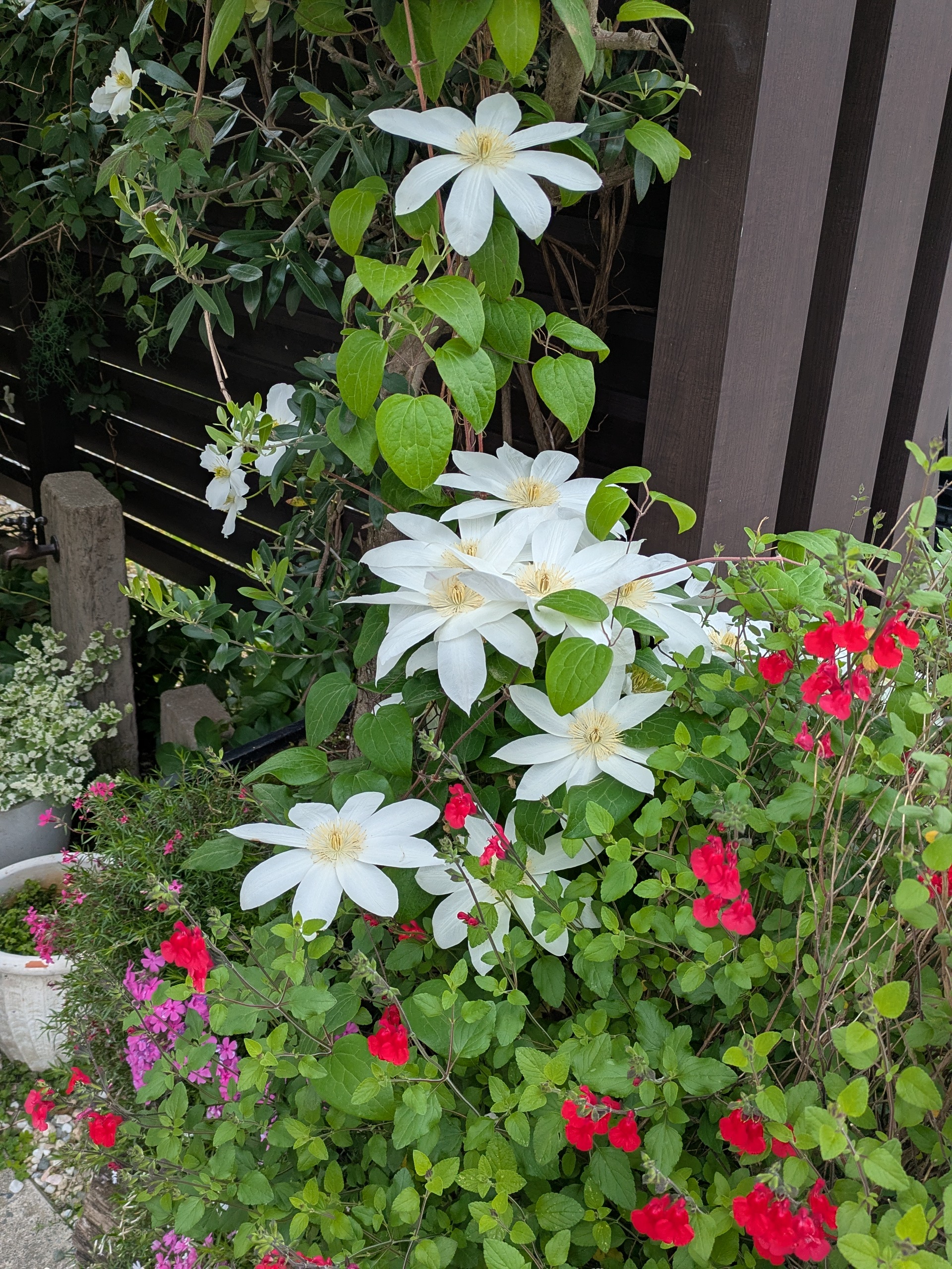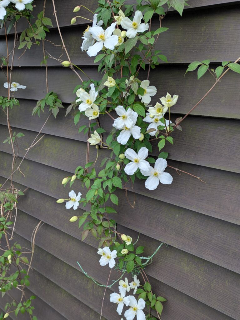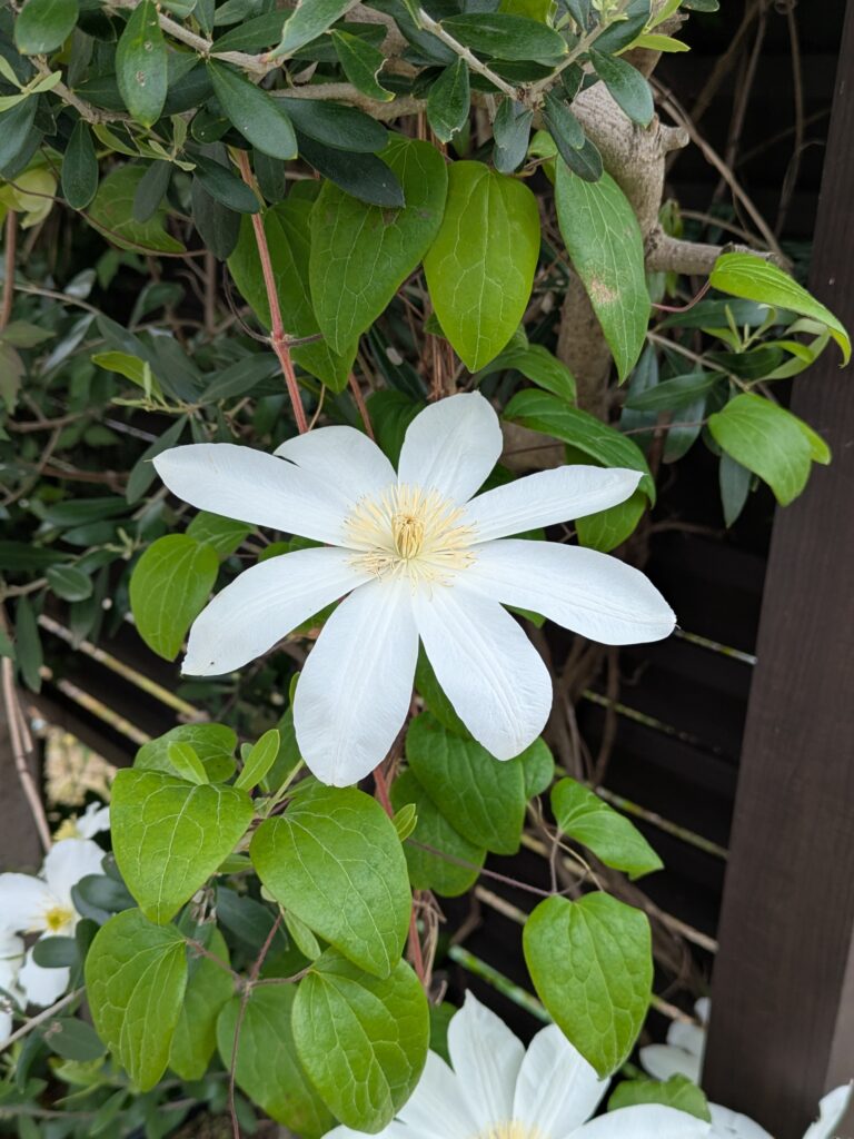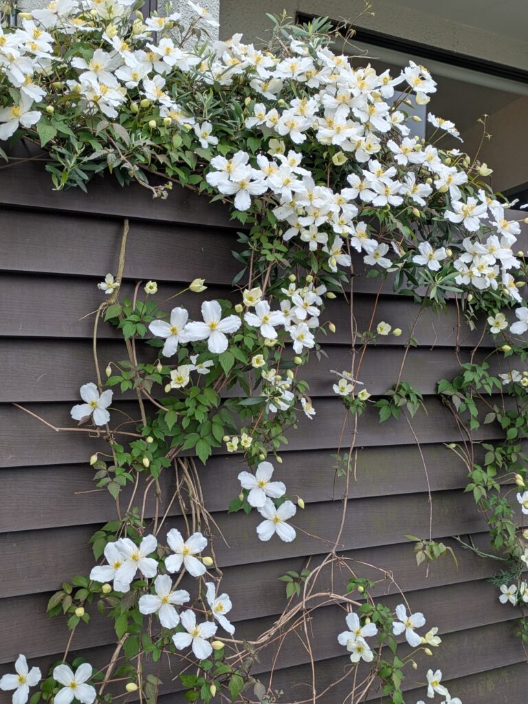 純白のクレマチスが描く、清楚で気品あふれる壁面景観