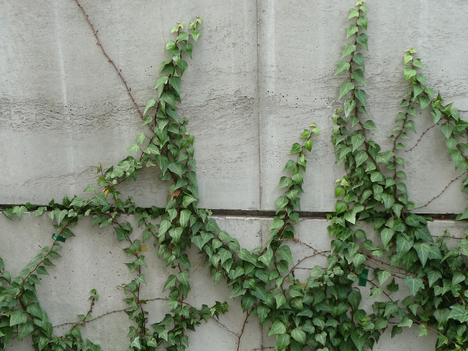 吸着根を発生する木つた、ヘデラ種などの植物では、壁面に発生したクラックを足掛かりにして登坂する事がある。クラックや下地から水分がしみだしている箇所では、吸着根は水分に向かって伸びる特性があり、侵入してクラックを広げる場合がある。登坂型壁面の躯体は吸着根の進入対策としてモルタルの表面押さえをする、上塗りをかける、誘発目地を作らない等のクラック対策が必要です。また排水口、窓、収縮クラック等の足掛かりとなる場所を作らない、あるいは近くを緑化しない、する場合は対策を最初に講じる配慮が必要です。