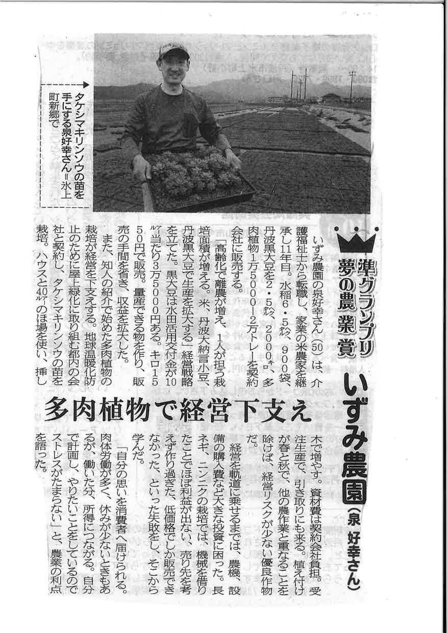 丹波新聞2024年4月14日号に丹波市内で開催された第11回丹波農業グランプリの記事が掲載されました。