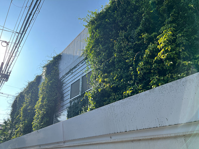壁面に映える植物を通して四季や年月を感じます。